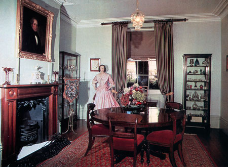 The 1950s also witnessed a drive to protect Tasmania's 'wealth of beautiful buildings', especially of the Georgian period, which conferred 'an old-world stateliness on city, town and country'.[31] Country areas were dotted with 'stately dwellings' and in the cities could be found 'elegant mansions' and 'fashionable villas'. In 1955 the annual conference of the Australian Institute of Architects was held in Hobart and delegates were 'impressed by the dignity and charm of Tasmanian buildings'. They urged preservation of 'the early colonial style architecture'. The Tasmanian Government took a first step by acting on the Scenery Preservation Board proposal to acquire the farming homestead Entally House at Hadspen as a 'national house'. But the government lacked the funds to acquire all the fine buildings that justified preservation and community groups had to fill the breach. The activists seeking to turn Narryna into a folk museum hoped their proposal would protect that gracious building and be the next step on the road to forming a National Trust in Tasmania to protect other 'beautiful colonial buildings'.[32] They even hoped that the National Trust, established initially in Hobart in November 1954, would establish its headquarters in Narryna, but this did not happen.[33] The Hobart-based Trust was ineffective, perhaps because so many of its members had their hands full developing Narryna as a folk museum. In 1960 another body registered itself as the National Trust (Tas) Ltd in Launceston and took control of the movement to preserve historic buildings.[34]